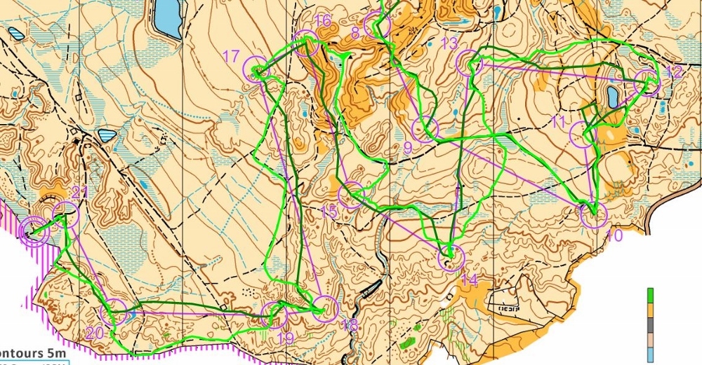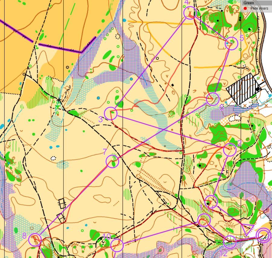 Each might feel they could have challenged the leader on 24 controls if they had been more ruthless in maximising their score, rather than just trying to sample the best terrain and tackling the longer legs! Controls were worth the same, regardless of difficulty or location.