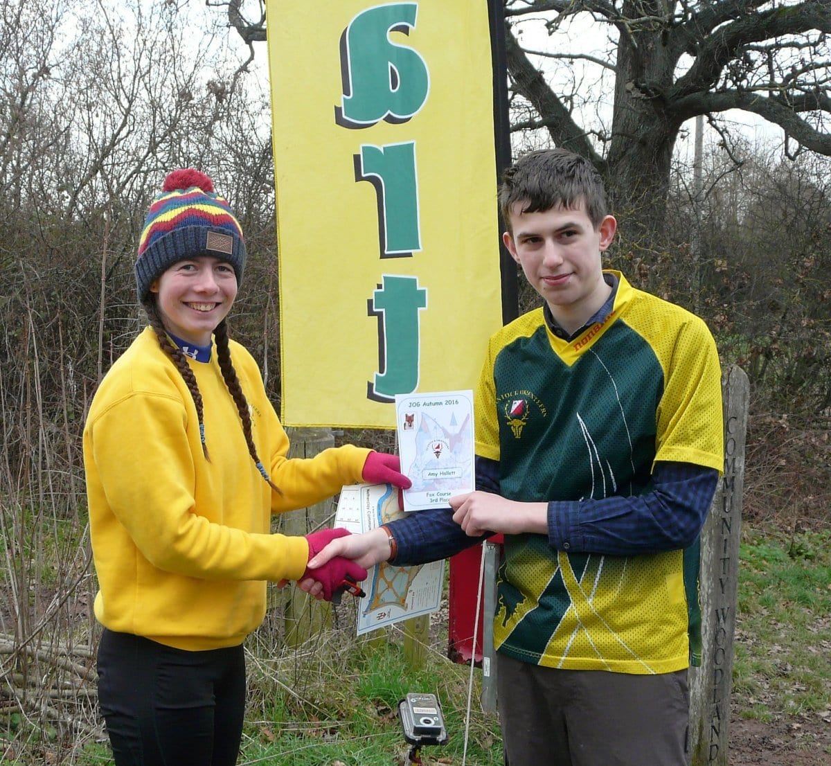 For Eleanor and I all was going well: we had correctly identified various map features, symbols and terminology, worked out photo O and trail O clues and pounded along frozen ground feeling smug. Then our downfall, namely the IOF symbol for runnable in one direction. This foxed several competitors and generated much discussion at the finish. After visiting all possible options for this control we were back on track. A quick question on scale led to the welcome instruction to navigate to the finish.