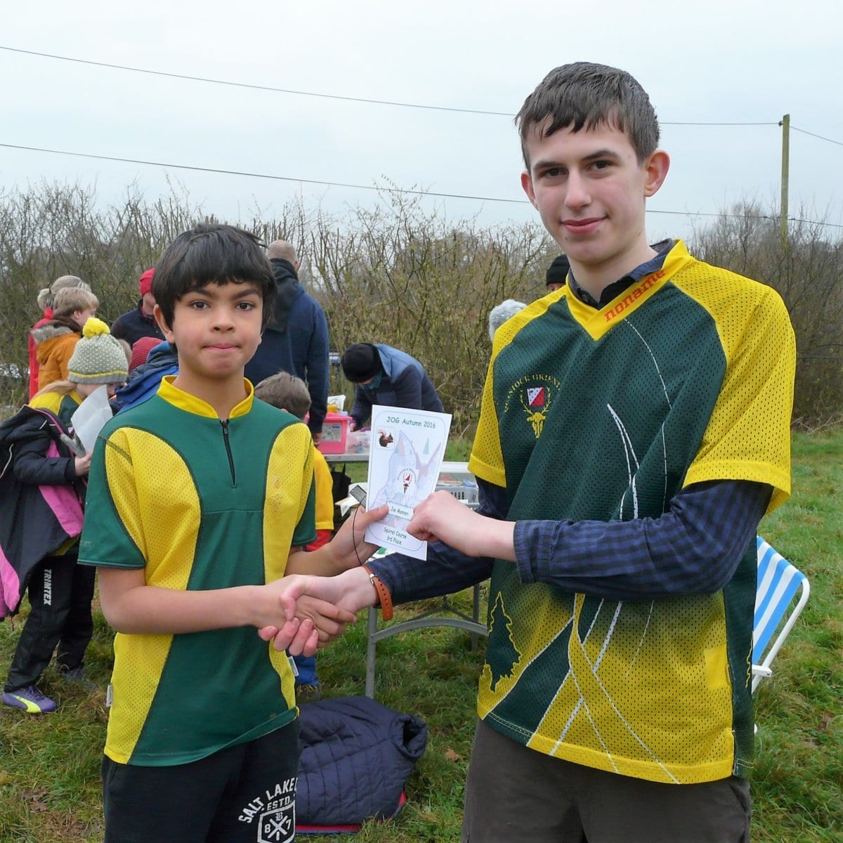 Footy matches were getting postponed locally due to frozen pitches and our numbers were bolstered by some of those younger footballers! No such problems with our "playing field", just nice crisp conditions for a Saturday afternoon run. Not that you'd think it was icy judging by those collecting their JOG awards in short sleeves.