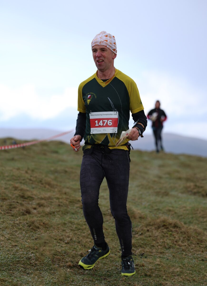 ‘The Championships were a good test of navigational ability, stamina and speed in the wintery conditions. I had a late start so spent some time sat in Steve’s car watching the hail bounce of the bonnet before the sun made a timely appearance. On my way uphill to the start, I met some of the QO finishers on their return who endured horizontal snow and visibility down to 50 metres. From the go I battled with the steep, rough climb and could only watch those with younger legs ease away, and that was only to the start kite. Luck was on my side with the weather and I was thankful for the baseball cap to keep the sun out of my eyes (sorry Guys!). The make or (nearly in my case) break leg was encountered early, 1.6km of climbing across undulating rough, moorland with similar features easily mixed up. The rest of the race was down to holding good bearings across more varied terrain with crags and rocky areas. Tough, enjoyable and a fitting venue for the BOC.’