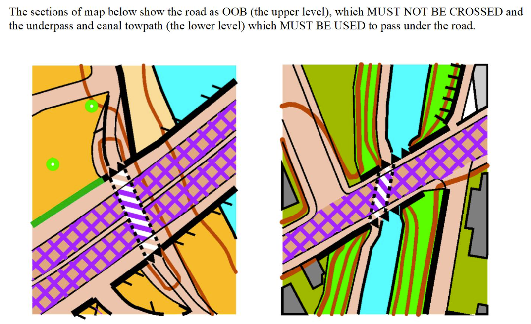 IMPORTANT. PLEASE READ. The main roads in Bridgwater are marked as OOB. Crossing them is not permitted except via the marked underpasses. This information will be conveyed at the start line to all participants.