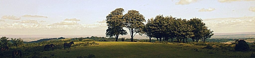 Open area of the Quantocks with wooded areas.