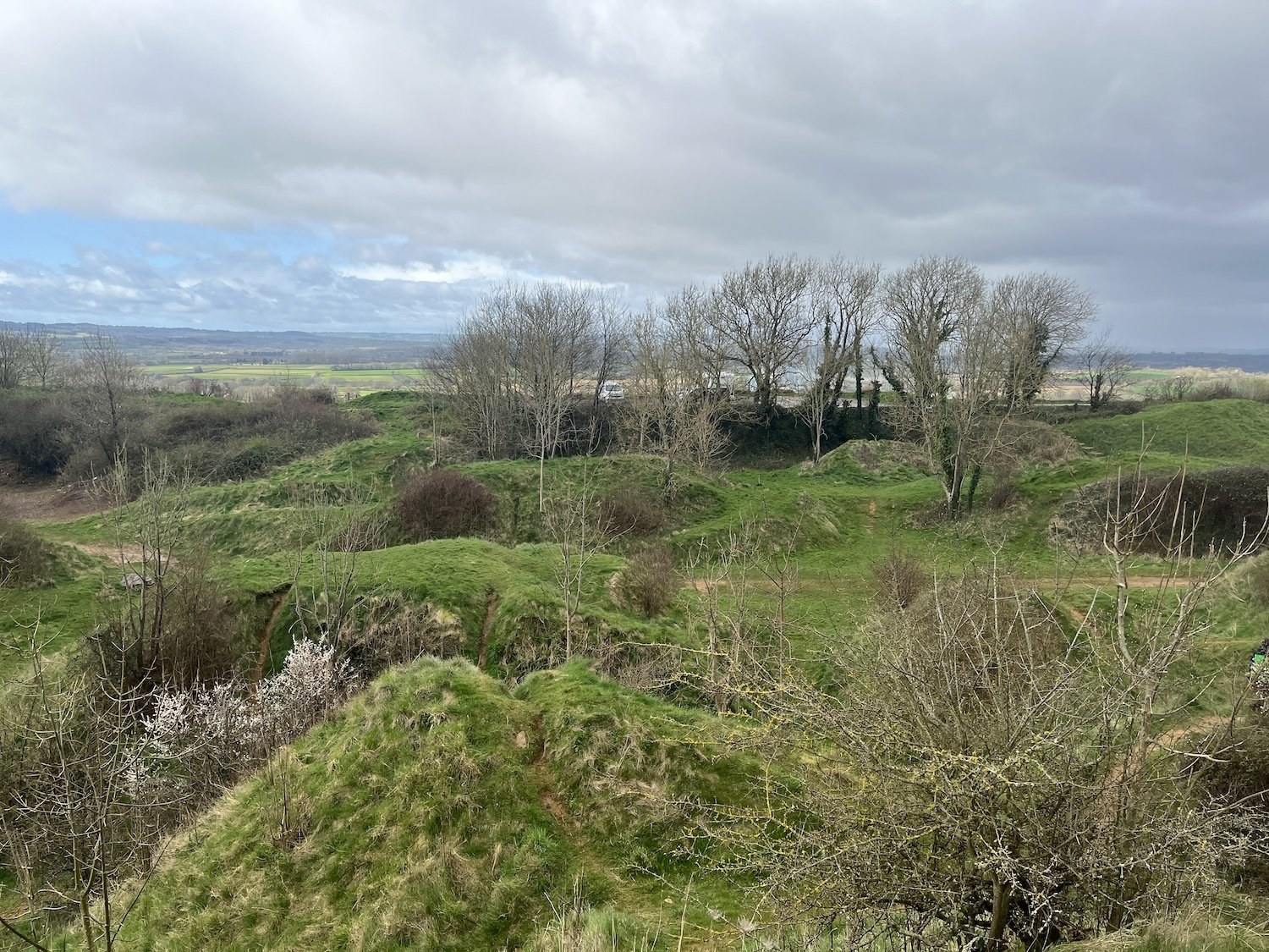 Interesting area with a variety of features - standing stones, old quarry spoil heaps, numerous depressions, wooded area and open ground.