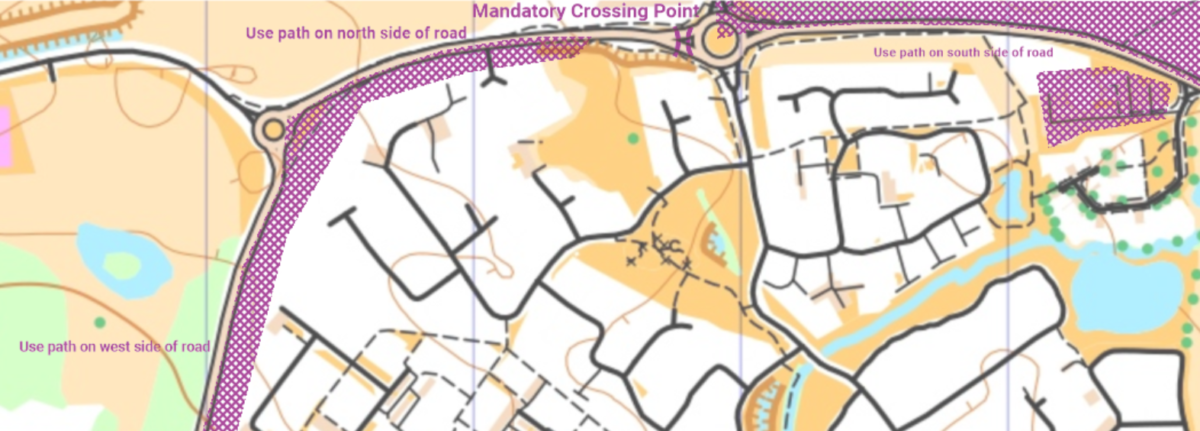 As usual, for the majority of the map you can cross roads anywhere you deem safe. However, in this instance there is a stretch in the north east where I have put in a mandatory crossing.